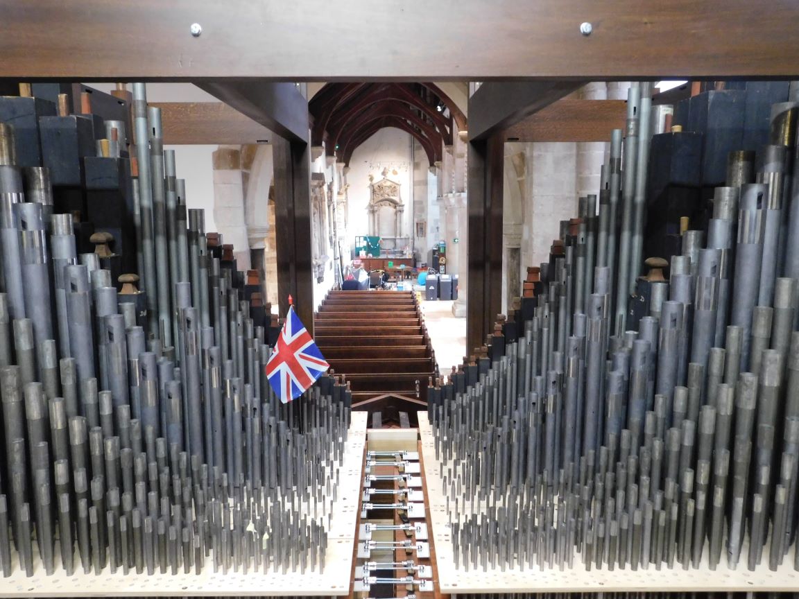 Some pipes were stored in the Minster and cleaned and repaired on site. Later in the year a completely new organ frame was erected along with brand new casework. The organ was fully working again by Autumn 2022, in time for all the Christmas services.